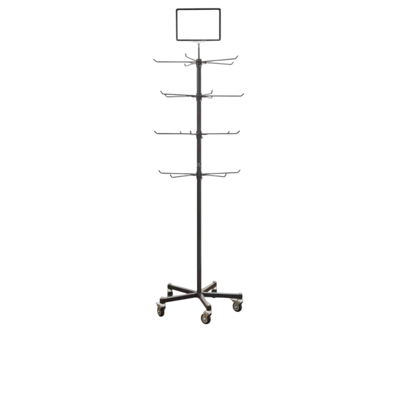 Моделът е оборудван с 4 въртящи се етажа, осигуряващи оптимално пространство за подреждане на различни артикули като бижута, ключодържатели, аксесоари за коса, сувенири и други малки продукти. Завъртането на етажите позволява лесен достъп от всички страни и ефективно представяне на стоките в търговски обекти.