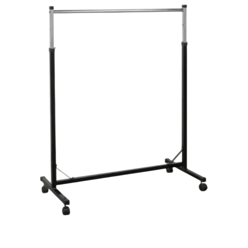 Единичен щендер с регулируема височина, предназначен за излагане на дрехи, текстилни изделия и аксесоари в магазини, шоуруми или складови пространства. С размери 1050×500 мм в основата и регулируема височина от 1000 до 1500 мм, моделът предлага практичност и гъвкавост според нуждите на търговския обект. Изработен от здрав метал, щендерът осигурява стабилност и надеждност при ежедневно натоварване. Конструкцията позволява лесна настройка на височината, което го прави подходящ за продукти с различна дължина — от къси блузи до дълги палта и рокли.