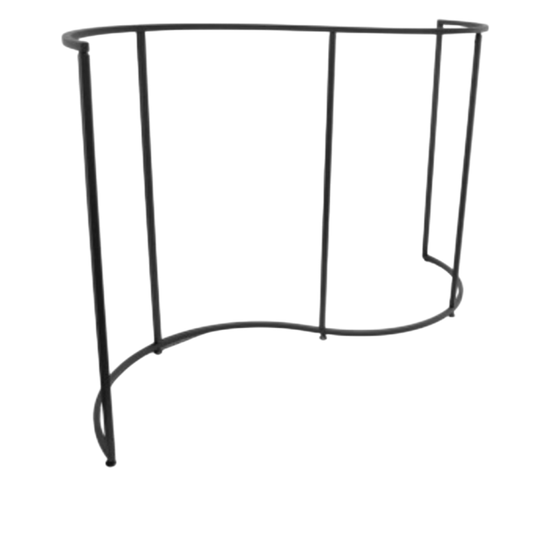 Конструкцията е изработена от здрава метална рамка с матово черно покритие, което гарантира издръжливост и устойчивост на износване. Модерният дизайн позволява лесна подредба и представяне на стоките, като съчетава стил и функционалност.