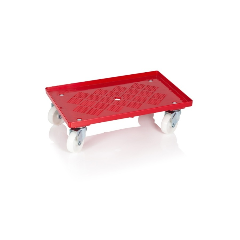 Транспортна количка 600×400 мм с INOX колела за хигиенни помещения без стопер, червена