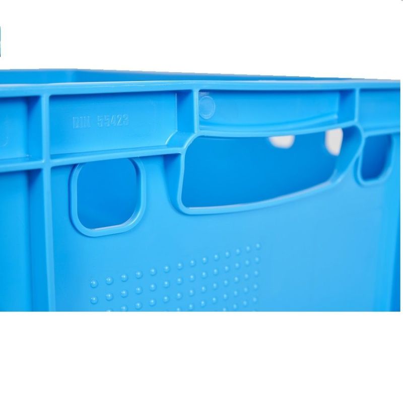 Касата E2 Evolution с размери 600×400×200 мм и капацитет от 39 литра е създадена с мисъл за индустриите с най-високи изисквания към хигиената и безопасността. Тя е изработена от ПЕНН (полиетилен ниско налягане), оцветена в светло синьо.