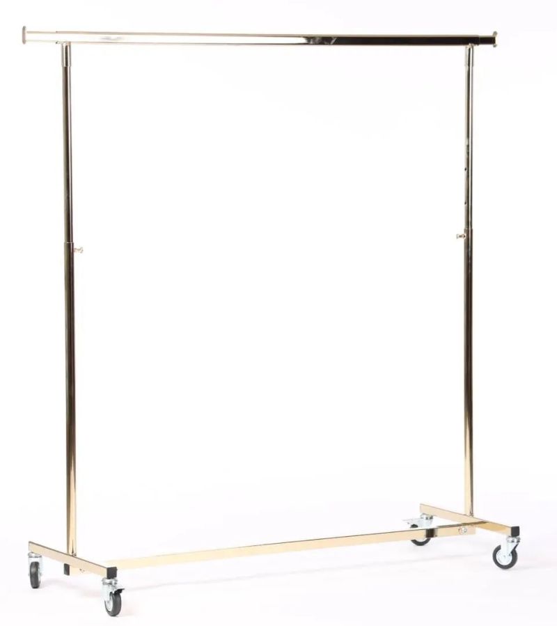 Единичен сгъваем щендер с регулируема дължина от 1500 до 2100 мм и височина от 1370 до 2200 мм. Подходящ за излагане на дрехи в магазини, шоуруми и складове. Конструкцията е стабилна, изработена от метал, което гарантира дълготрайна употреба и устойчивост при натоварване. Златното покритие придава стилен и модерен външен вид, подходящ за елегантно представяне на стоките. Лесно се сгъва и разгъва, което позволява удобен транспорт и съхранение.