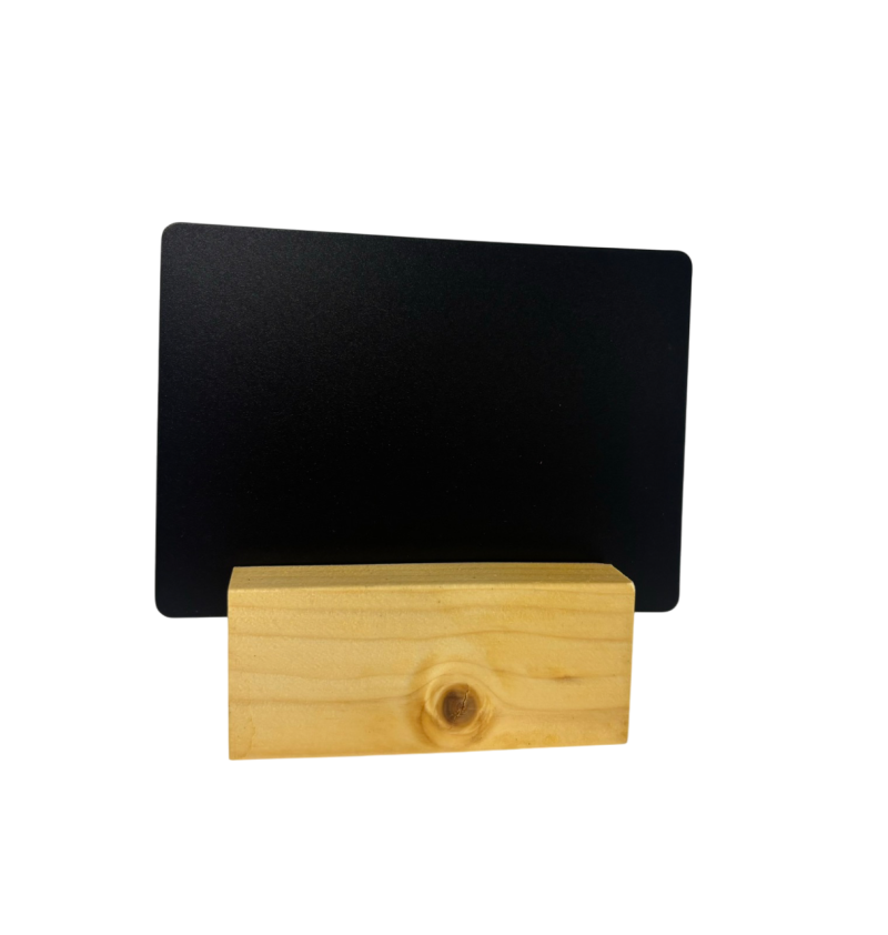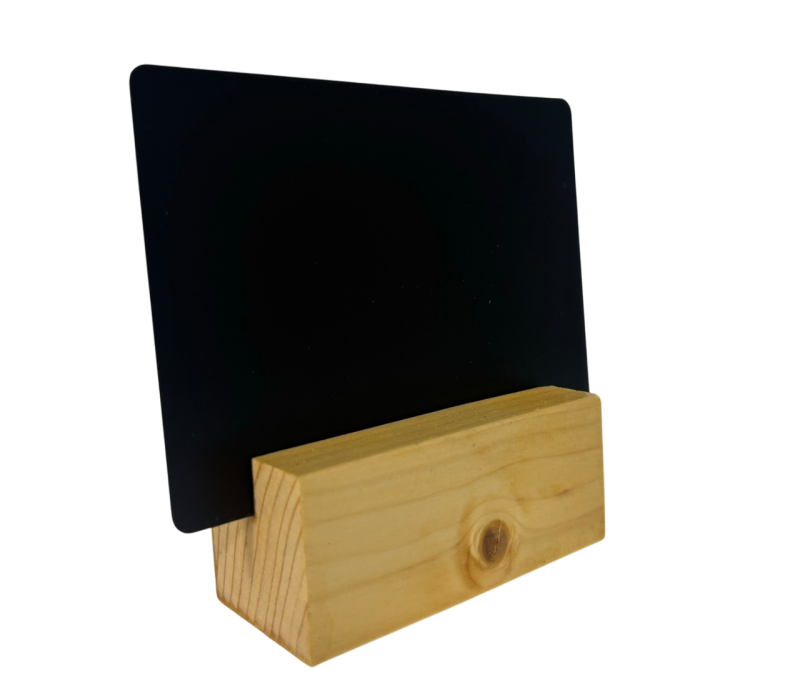 Елегантно дървено трупче, изработено с внимание към детайла, подходящо за поставяне на рекламни или информационни табели. С размери 105 x 45 x 45 мм, то е компактно, но достатъчно стабилно, за да държи табелата изправена. Прорезът е изрязан прецизно, за да осигури сигурно закрепване на табелата без допълнителни аксесоари. Моделът е с прави ъгли и обработен с устойчиво покритие, което предпазва повърхността и удължава експлоатационния му живот. Благодарение на своя изчистен дизайн, трупчето се вписва както в модерни, така и в класически интериори. Подходящо за ресторанти, хотели, магазини и събития. В цената не е включена табелката.