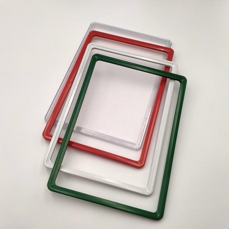Прозрачна рамка формат А4 (297х210 мм) с интегриран прозрачен PVC джоб за лесно поставяне и подмяна на листове.