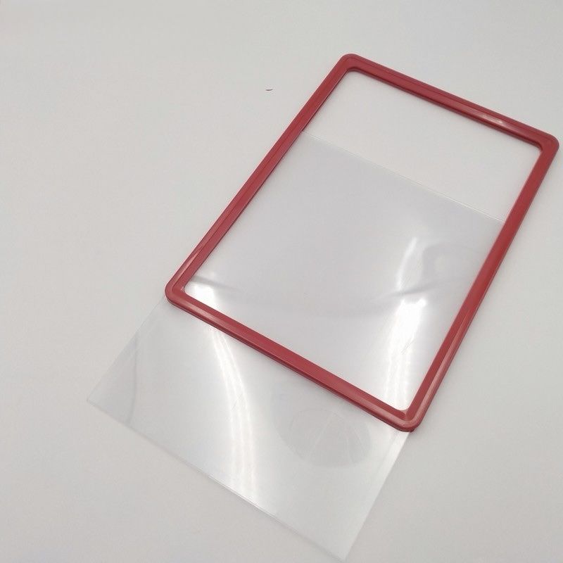 Рамка А4 червена (297x210 мм) с прозрачен джоб за лесна смяна на документи и защита от замърсяване.