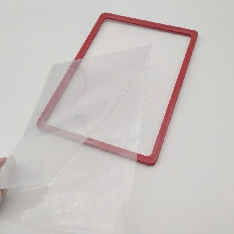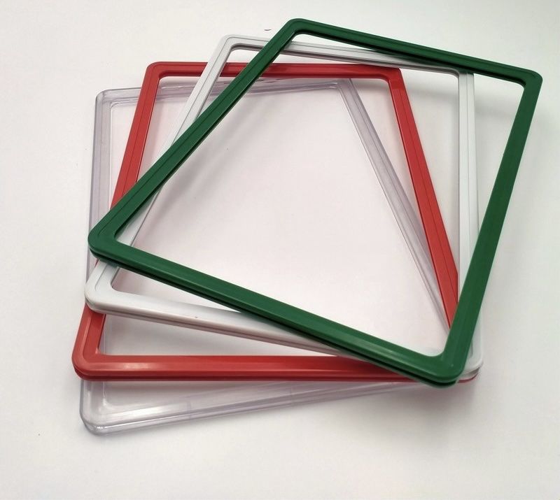 Рамка А6 в червен цвят с прозрачен джоб за бърза и лесна смяна на документи.
