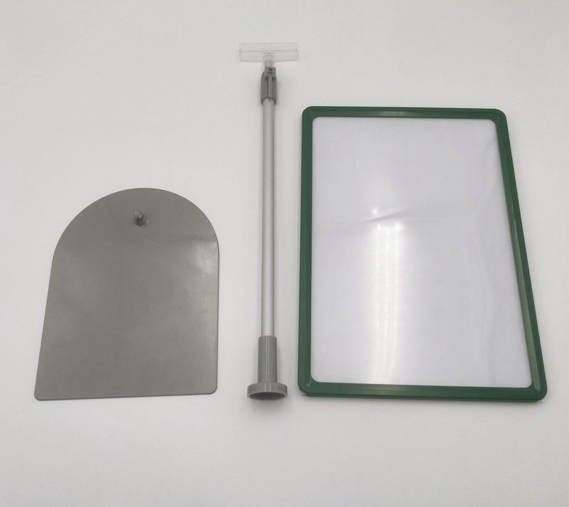 Стойката е изработена от висококачествен метал с устойчива и тежка основа, която гарантира стабилност при поставяне на рамки. Подходяща е за използване с различни размери рамки, както в офиси, така и в магазини, изложбени зали или други пространства, където е необходимо показване на информация. Монтажът е бърз и лесен, а дизайнът позволява поставяне на рамката както вертикално, така и хоризонтално. Металната основа осигурява дълготрайна употреба и надеждност.
