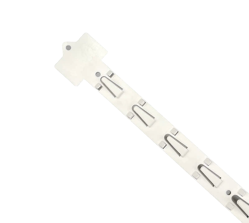 Бяла пластмасова крослента с обща височина 90 см, оборудвана с 12 щипки за стабилно захващане на различни артикули. Леката, но издръжлива конструкция позволява лесен монтаж и преместване. Крослентите могат да се наслагват една върху друга, което осигурява гъвкавост при подреждането и оптимално използване на пространството. Подходяща е за магазини, щандове и изложбени пространства.