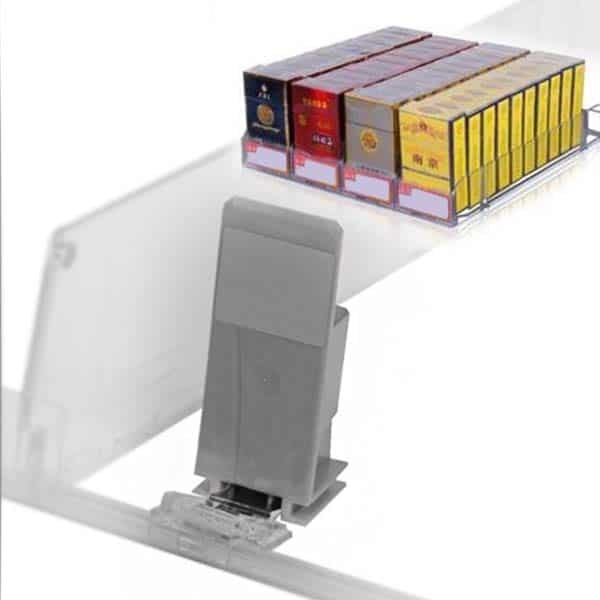 Автоматичен избутвач (pusher) със сила на натискане 2N, предназначен да изравнява и изтегля продуктите отпред на рафта за по-чист вид и по-бързо обслужване. Моделът е без собствен плъзгащ профил и без заден стопер – закрепва се само към предната лайсна за разделители. Подходящ е за кутии цигари и други компактни опаковки.