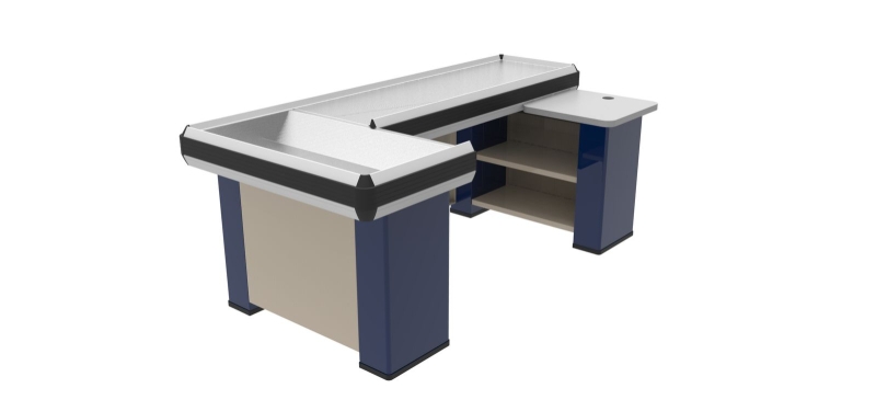 В предната част е предвидена скосена повърхност на плота, която осигурява удобно място за оставяне на маркираните стоки. Съществува и възможност за фабрично изрязване на част от плота за интегриране на скенер (по заявка).
