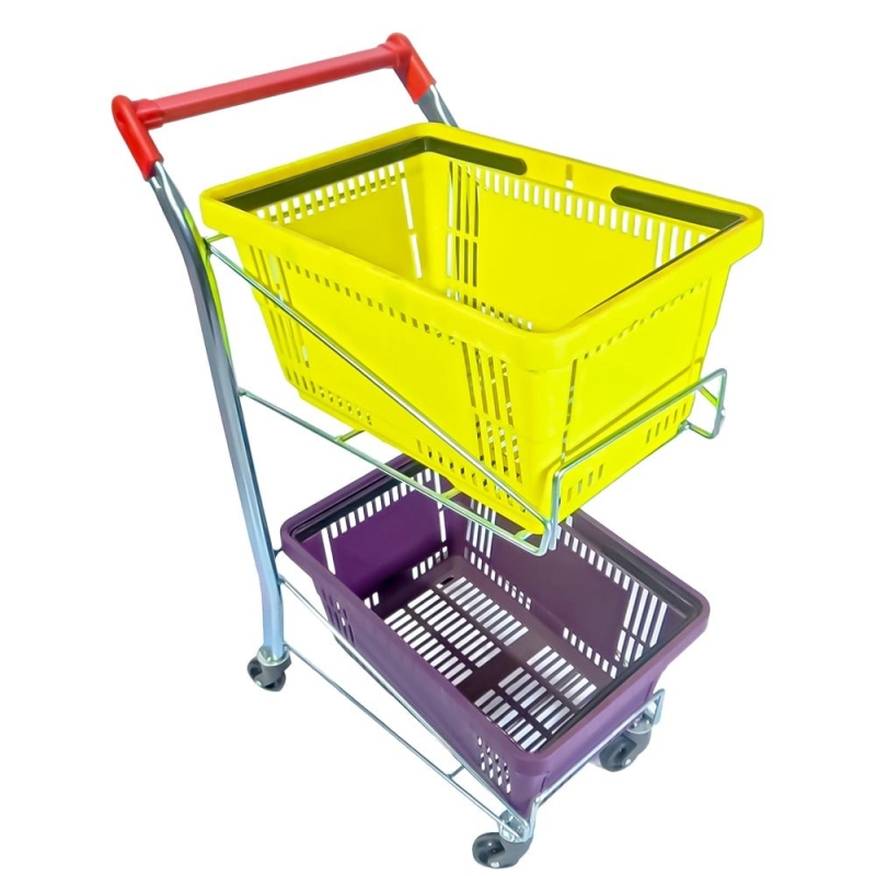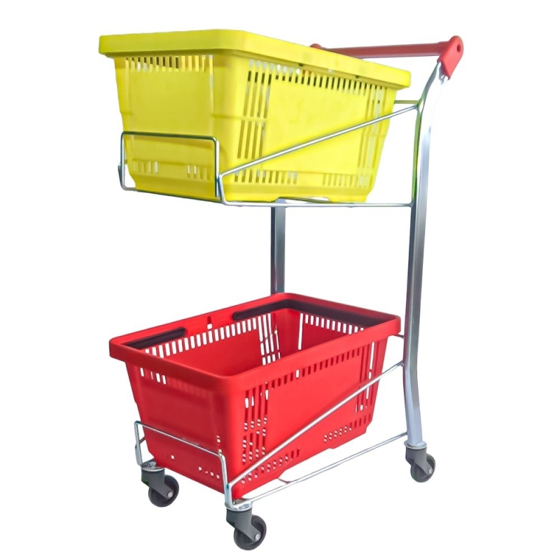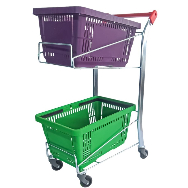 Начало Аксесоари Колички за пазаруване Стойка за кошници двойна с колела