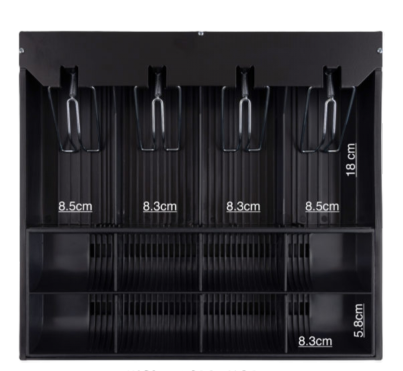Осигурете бързо и безпроблемно обслужване, съчетано с безупречна защита на Вашите парични средства. Този касиерски сейф е проектиран да отговори на високите изисквания на всеки търговски обект, предлагайки едновременно сигурност и изключителна организация. Корпусът е изработен от студено валцована стомана, гарантираща дълъг експлоатационен живот и висока устойчивост срещу опити за разбиване, като допълнително е включен надежден ключ срещу неоторизиран достъп, осигуряващ контрол и спокойствие. За отлична организация, чекмеджето разполага с 5 регулируеми отделения за банкноти и 8 отделения за монети, които позволяват бързо и точно боравене с паричните средства при връщане на ресто. За дискретно съхранение, допълнително са включени 2 скрити отделения под сортировача за съхранение на едри банкноти, ваучери или касови бележки, далеч от погледа. Благодарение на интерфейсния кабел RJ11 (12V/24V), чекмеджето може да се отваря автоматично чрез електрически импулс от Вашия касов апарат, фискален принтер или POS терминал, което значително ускорява процеса на обслужване на клиентите. Инвестирайте в надеждност и ефективност – Вашият бизнес заслужава най-добрата защита на паричните потоци.