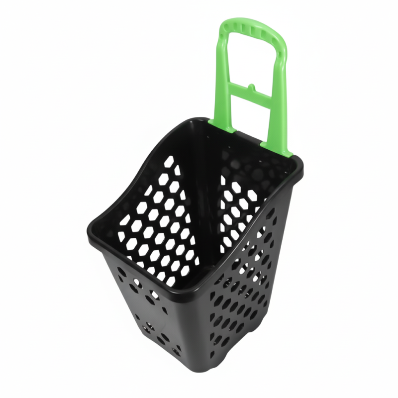 Кошница за пазаруване с обем 45 литра е практично и удобно решение за търговски обекти като супермаркети, минимаркети, магазини за битова техника, дрогерии и други обекти с клиентски самообслужване. Съчетава в себе си компактност, стабилност и удобство при пренасяне на стоки, като значително улеснява клиентите при по-големи покупки. Изработена от здрав и устойчив на износване пластмасов материал, кошницата е проектирана за продължителна употреба в натоварена търговска среда. Снабдена е с колелца и телескопична дръжка, което позволява лесно придвижване, дори когато е пълна с по-тежки продукти. Това прави преживяването на клиентите по-комфортно и ги насърчава към по-голям обем на пазаруване. За различен цвят може да се свържете с нас.