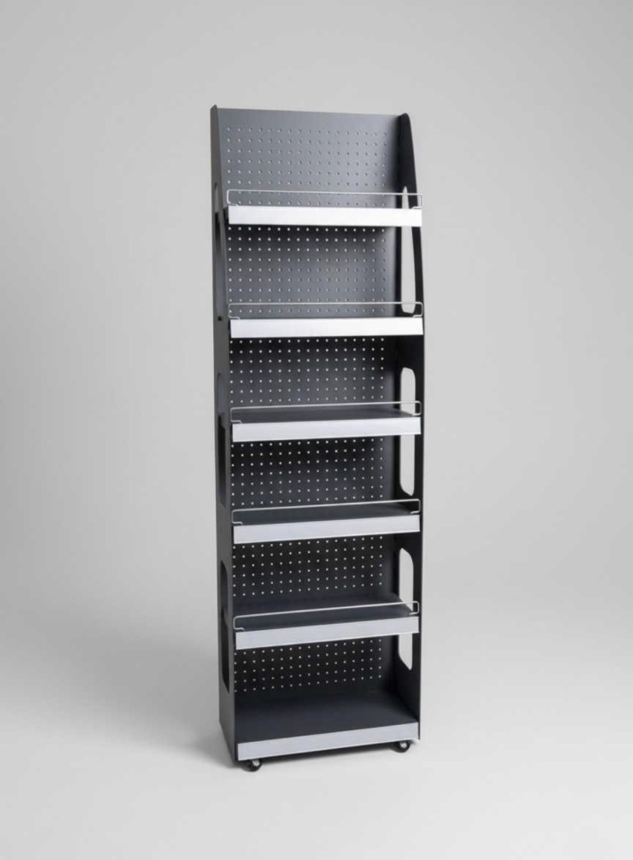 Максимална видимост в минимално пространство – със своята дълбочина от едва 20 см, стелажът е перфектен за тесни коридори или зони с голям човекопоток, където пространството е ограничено.